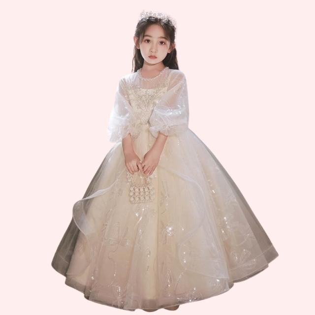 love charlotte 甜美氣質婚紗釘珠領口長袖長禮服(禮服 粉色 長裙 演奏 表演 生日 婚禮)