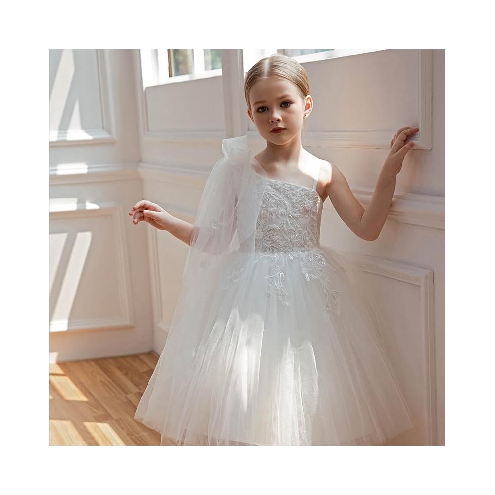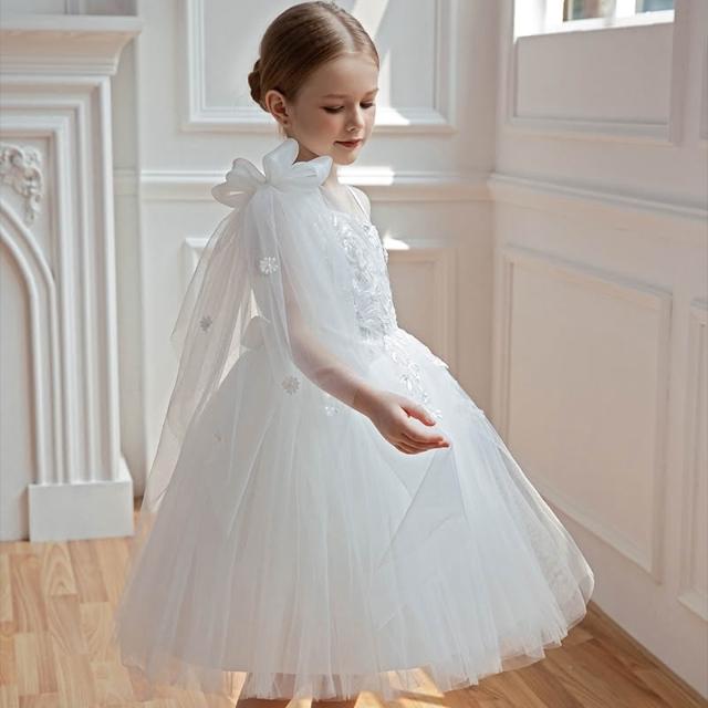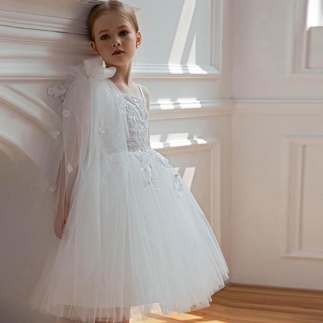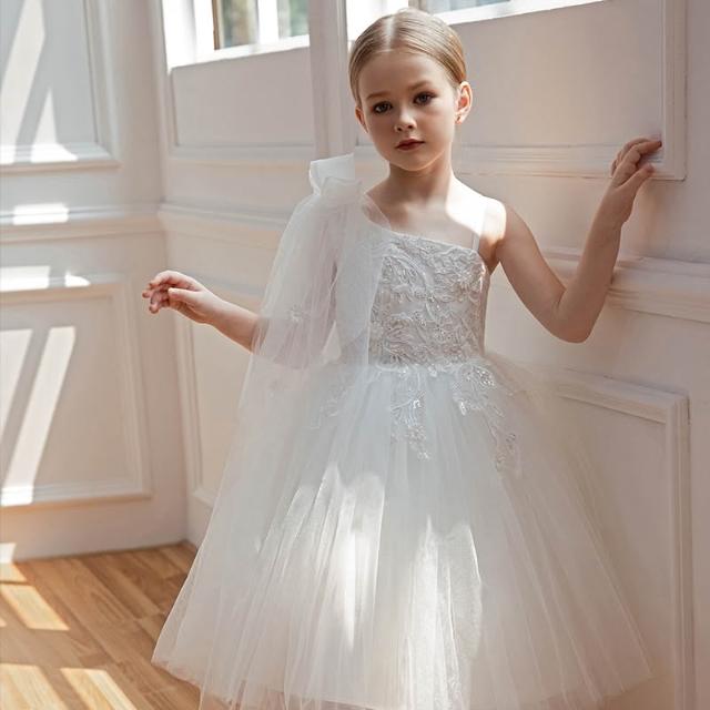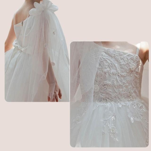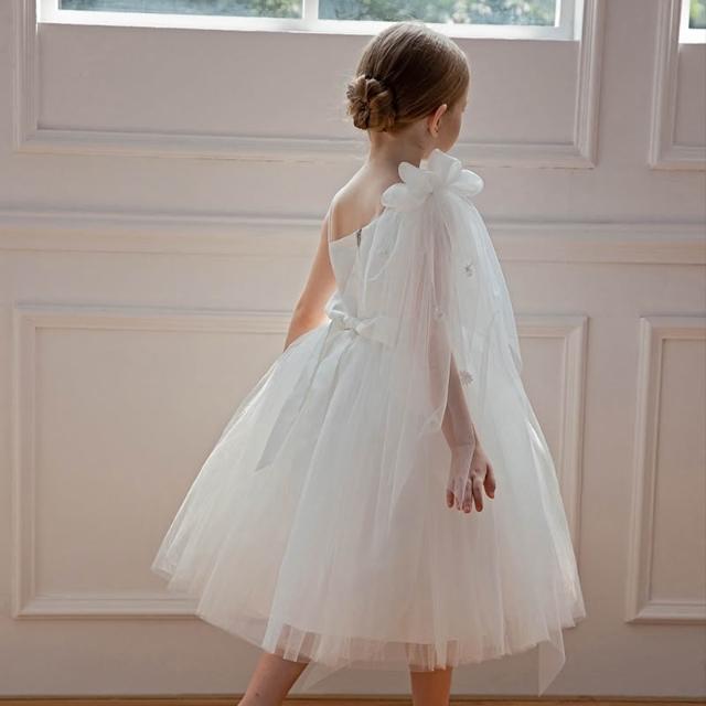 love, charlotte - 畢業典禮歐美風浪漫斜肩細緻珠片花朵純白紗小禮服 - 白色禮服 兒童禮服 畢業 花童