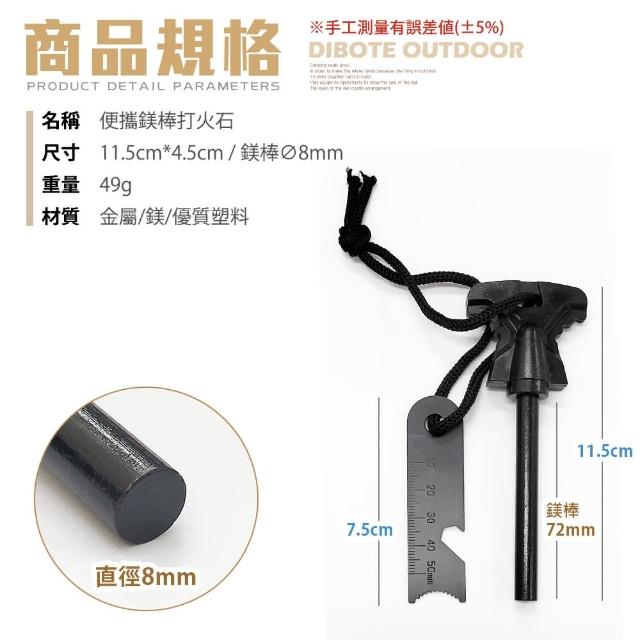 DIBOTE 迪伯特3合1戶外求生鎂棒打火石 扳手 比例尺 開瓶器(附刮片)