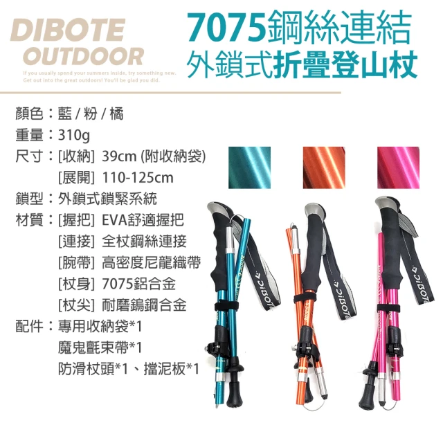 DIBOTE迪伯特外鎖式7075航太級鋁合金 折疊登山杖