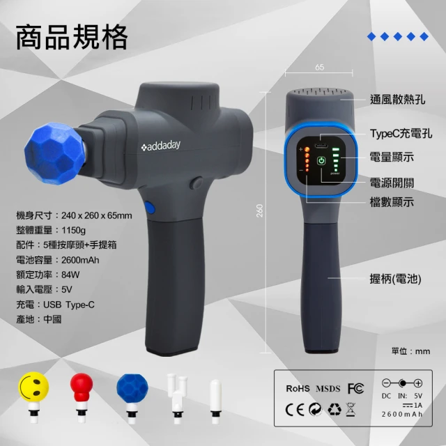 福利品出清 addaday BioZoom 振動筋膜按摩槍/震動槍(精裝手提箱)