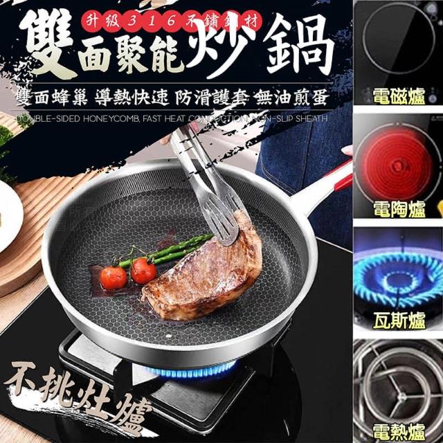 34cm雙面聚能316不鏽鋼蜂巢炒鍋(34CM/316雙面不鏽鋼/炒鍋/物理不沾)