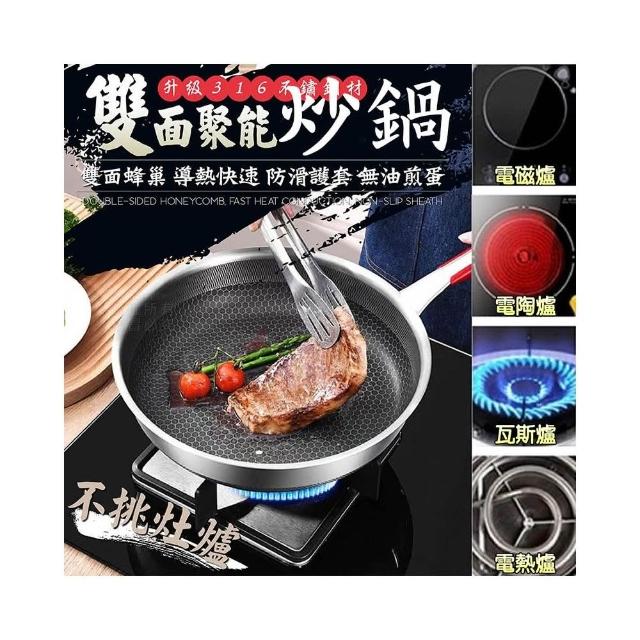 台灣品牌 34cm雙面聚能316不鏽鋼蜂巢炒鍋(34CM/316雙面不鏽鋼/炒鍋/物理不沾)