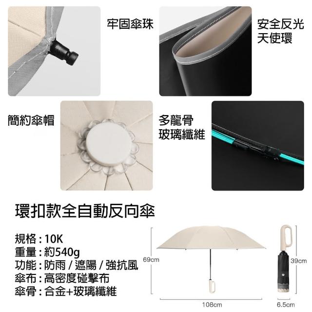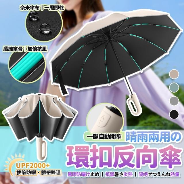 環扣型折疊反向傘 晴雨兩用自動傘(108cm大傘面/環扣隨意掛好收納/反向收折不滴水)