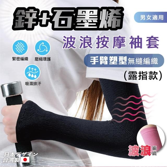 台灣製造 MIT 鋅+石墨烯 運動型 露指款按摩袖套(無縫編織/防紫外線/超薄透氣排汗/抗菌消臭)