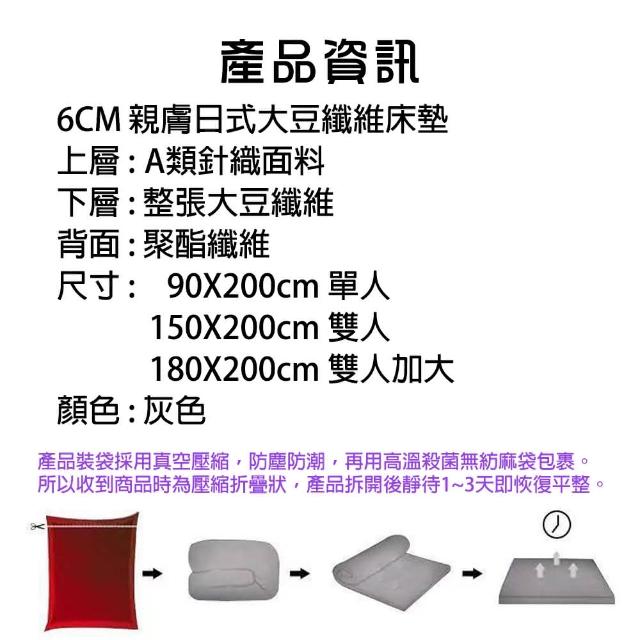 A類針織緹花 6cm 大豆纖維 床墊 灰90x200(單人/IKEA美規/大豆纖維/軟床墊)