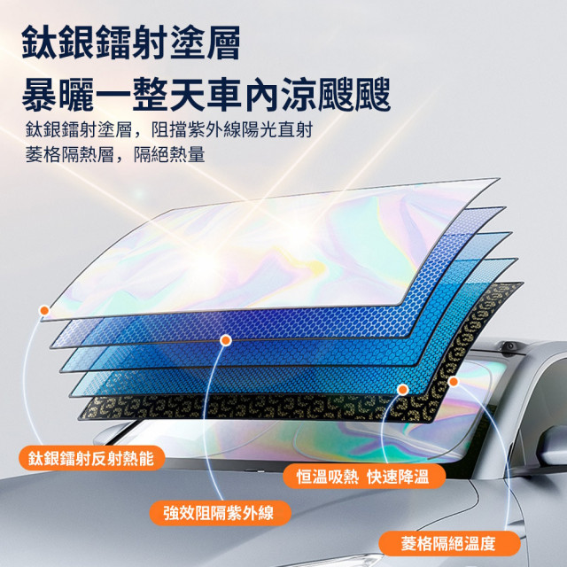 鈦銀布 汽車前擋 遮陽擋板 雙層加厚 可折疊收納(前檔遮陽/遮陽簾/收納遮陽板/折疊遮陽)