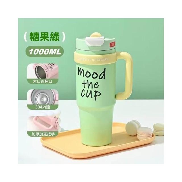 繽紛色彩 公升級 雙飲手把保溫杯1000ml(304不鏽鋼 保溫杯 冰霸杯 環保杯)