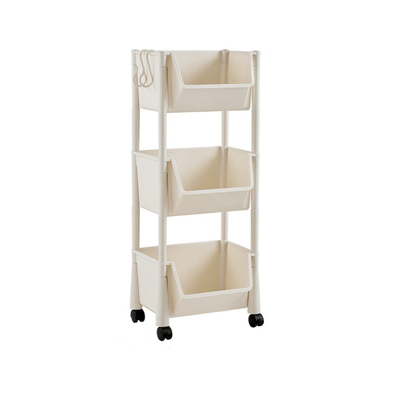 移動置物收納車 三層款(桌底收納/移動收納/移動書架/萬向輪掛勾收納櫃/置物推車/手推車)