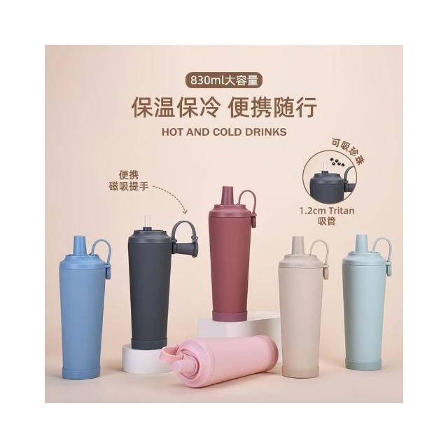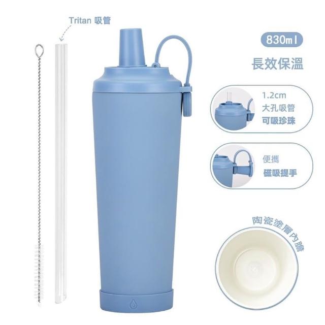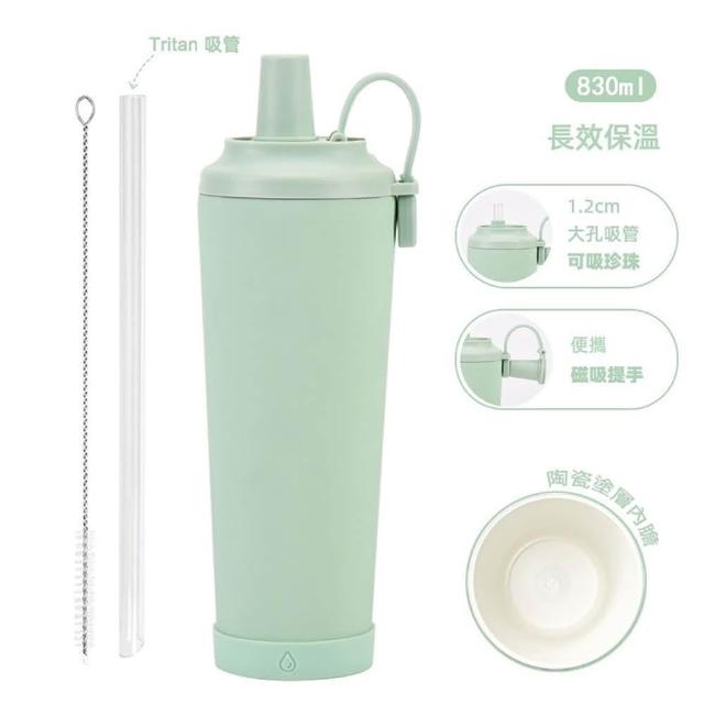 馬卡龍色系 雙飲 陶瓷塗層 Tritan吸管保溫杯 830ml 直飲 吸管飲 保溫杯 環保杯 保冷杯 珍珠奶茶杯 珍奶杯
