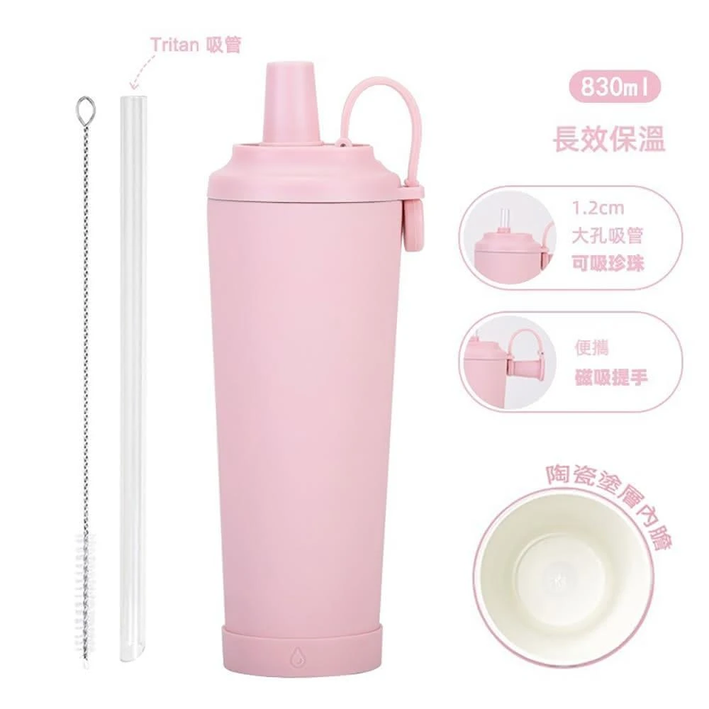 馬卡龍色系 雙飲 陶瓷塗層 Tritan吸管保溫杯 830ml 直飲 吸管飲 保溫杯 環保杯 保冷杯 珍珠奶茶杯 珍奶杯