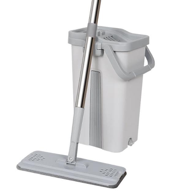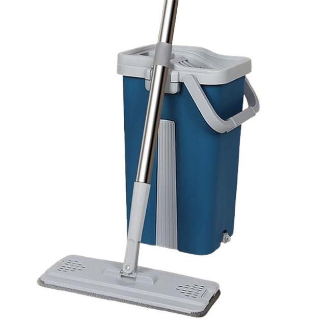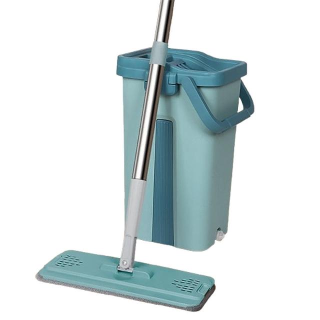 三色可選 升級款 輕巧型 免手洗平板拖把組 (1桿1桶3吸水布 洗脫合一 乾濕兩用 加大版面 靈活轉向 刮水桶)
