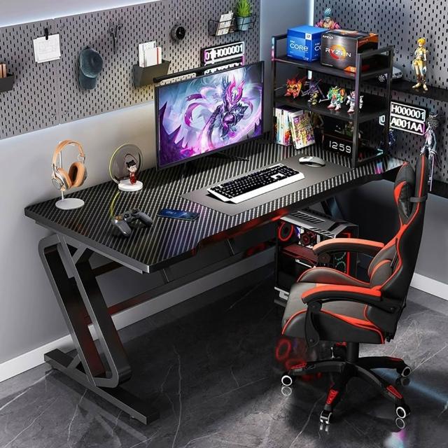 南池家居 結構加強版 碳纖維紋 電腦桌 黑架 (電競桌 轉角桌 電腦桌 工作桌 書桌 USB電腦桌)