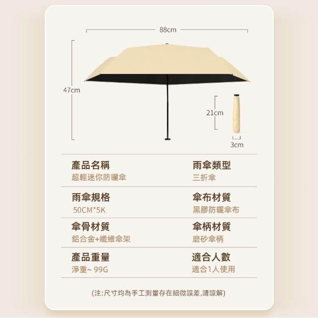 買1送1 99g 極輕超細羽毛傘 UPF50+黑膠雨傘(折疊傘/晴雨傘/摺疊傘/口袋傘/輕量傘/迷你傘)買一送一