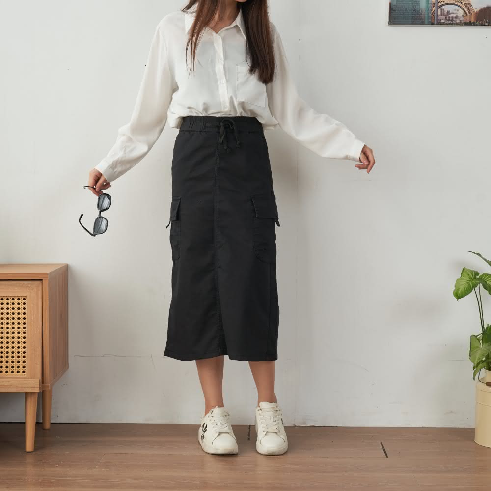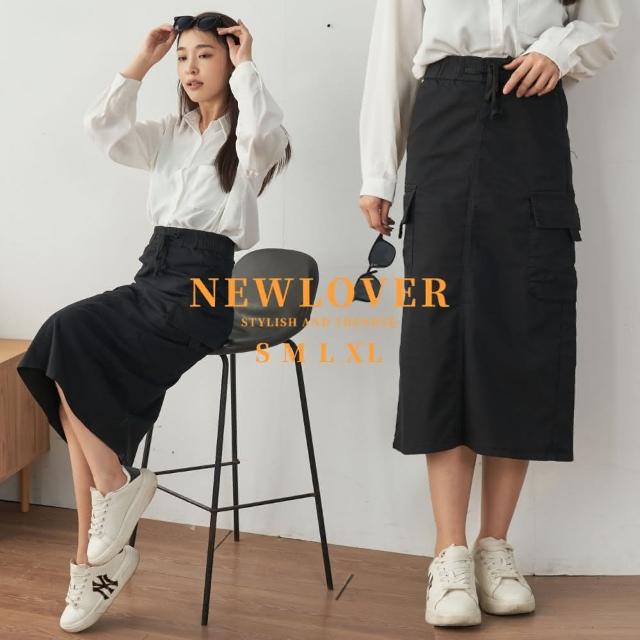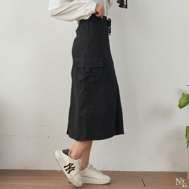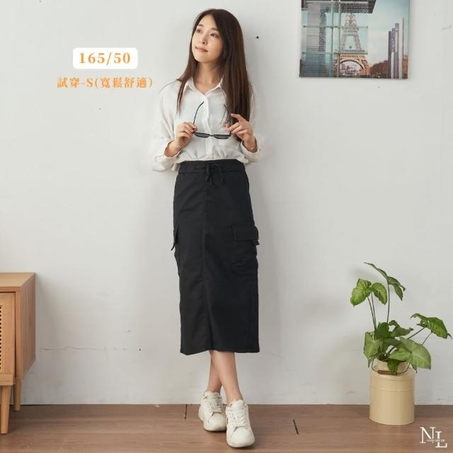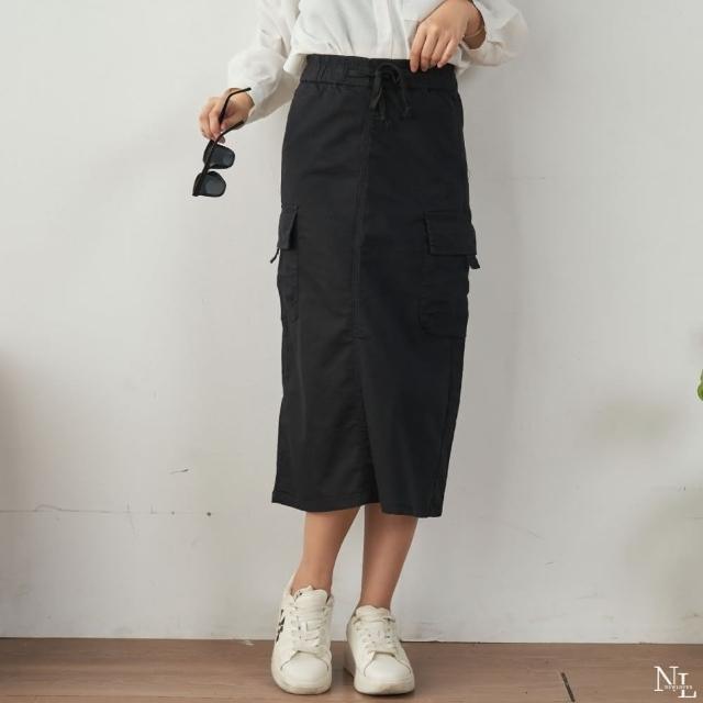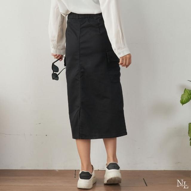 NEWLOVER牛仔時尚 鬆緊腰側口袋長裙 側口袋長裙 長裙 鬆緊腰長裙 黑色長裙 牛仔長裙 裙子 161-7524長裙/牛仔裙/鬆緊腰/黑色