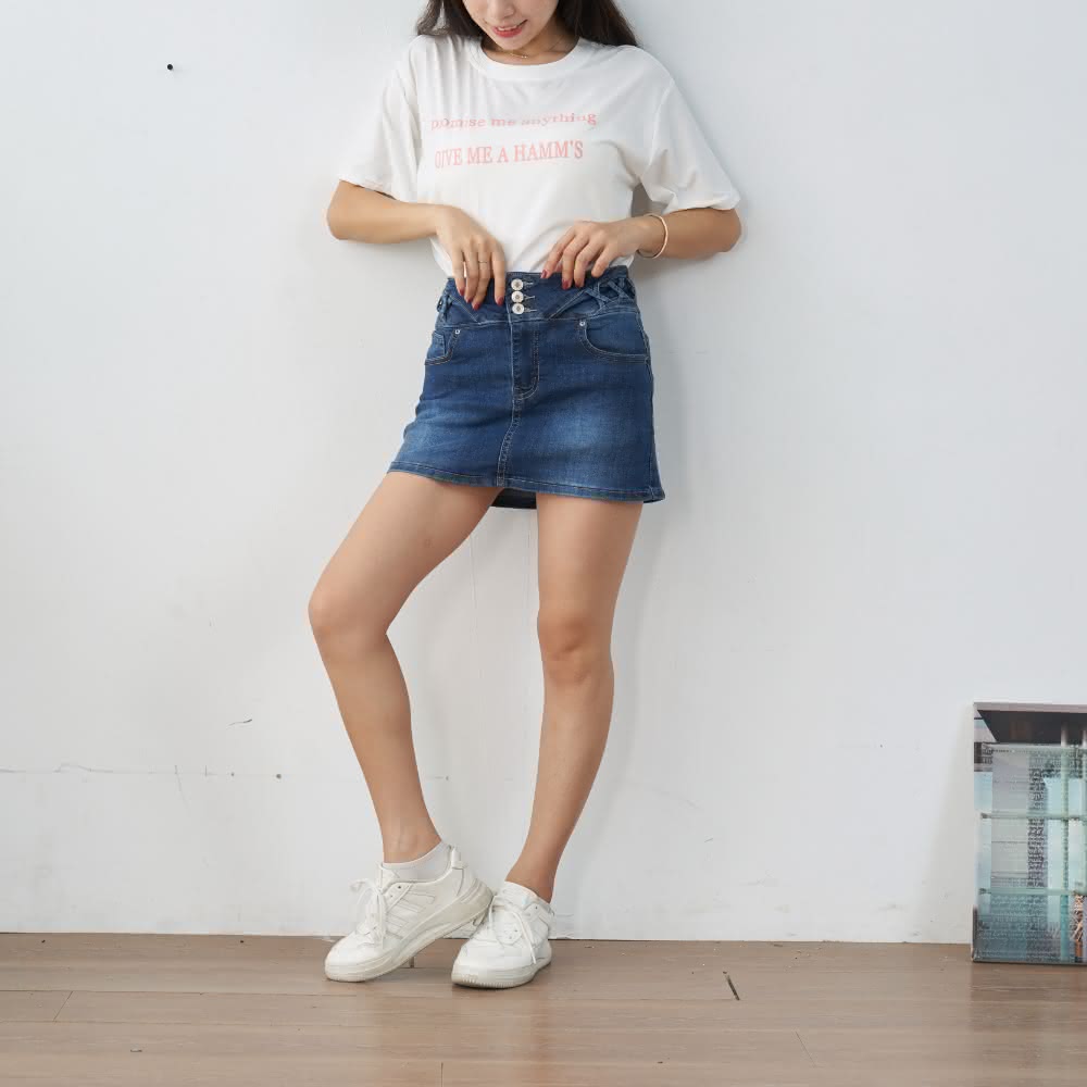 NEWLOVER牛仔時尚 復古風甜美減齡感排釦褲裙 排釦褲裙 褲裙 短裙 牛仔裙 牛仔短裙 半身裙 161-7502褲裙/牛仔裙/短裙/排扣褲裙/半身裙