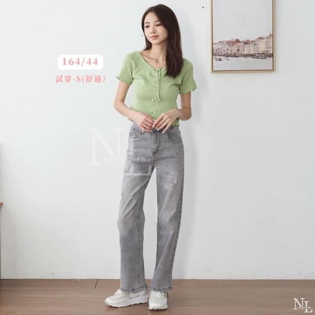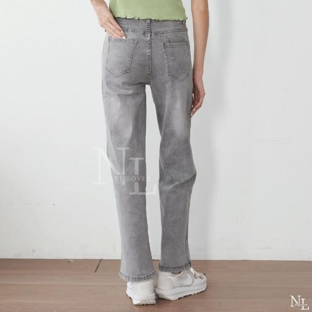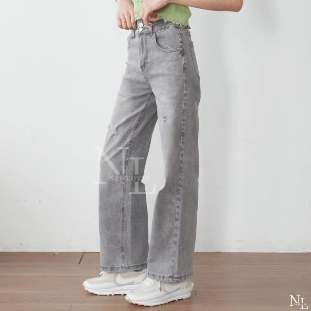 NEWLOVER牛仔時尚 絕美小眾奶灰 高腰刷破牛仔寬筒褲 S-XL 牛仔褲 彈性寬褲 長褲 灰色 161-6829