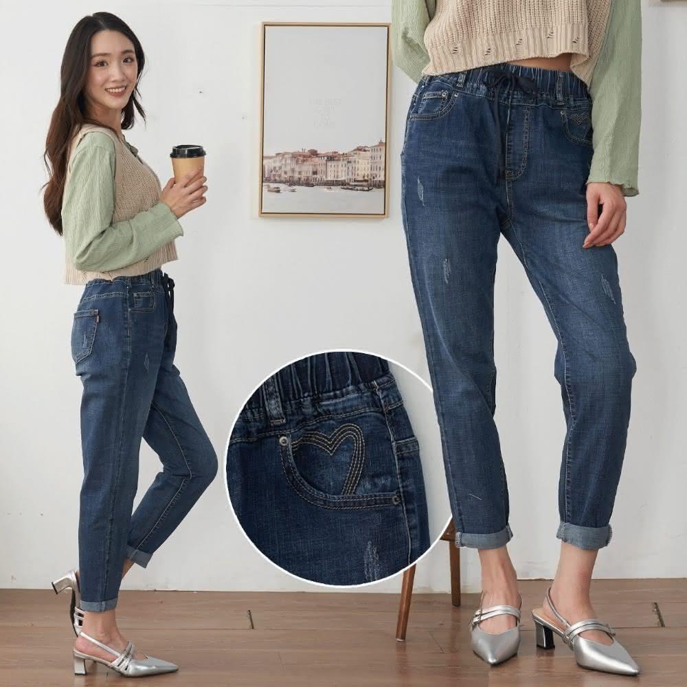 NEWLOVER牛仔時尚 口袋裡的愛 彈性舒適刷痕男友褲 S-XL 哈倫褲 牛仔褲 長褲 161-6845