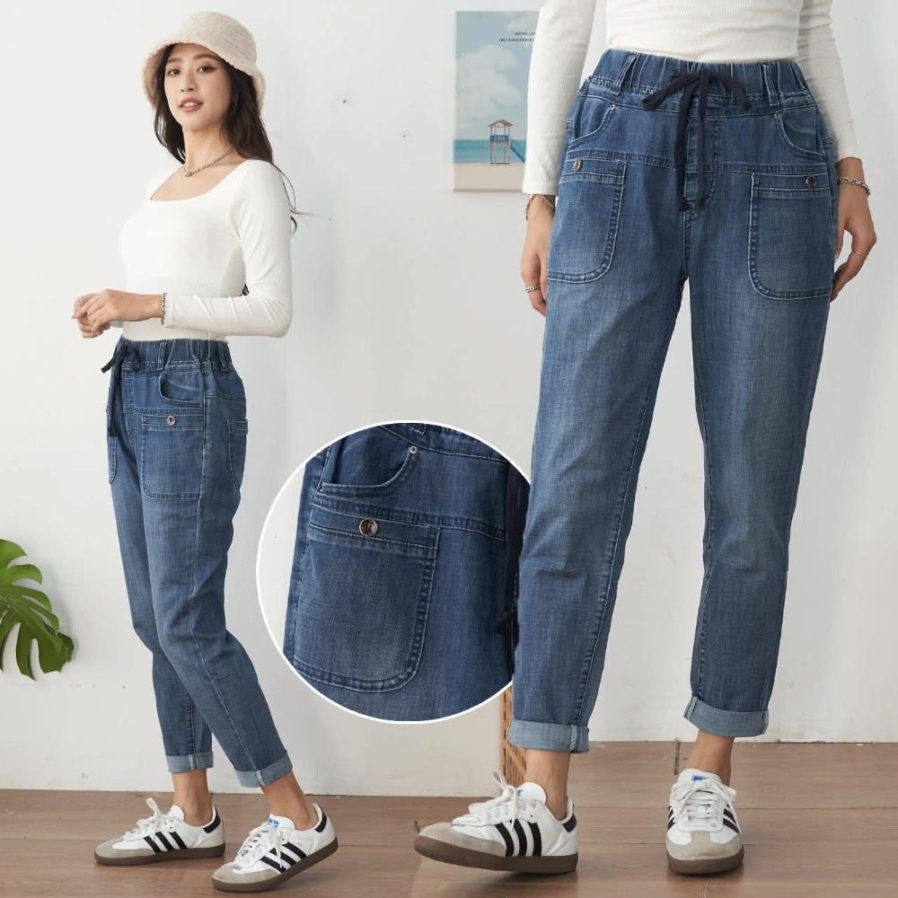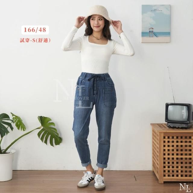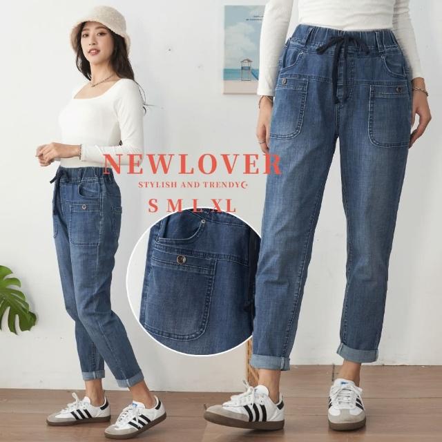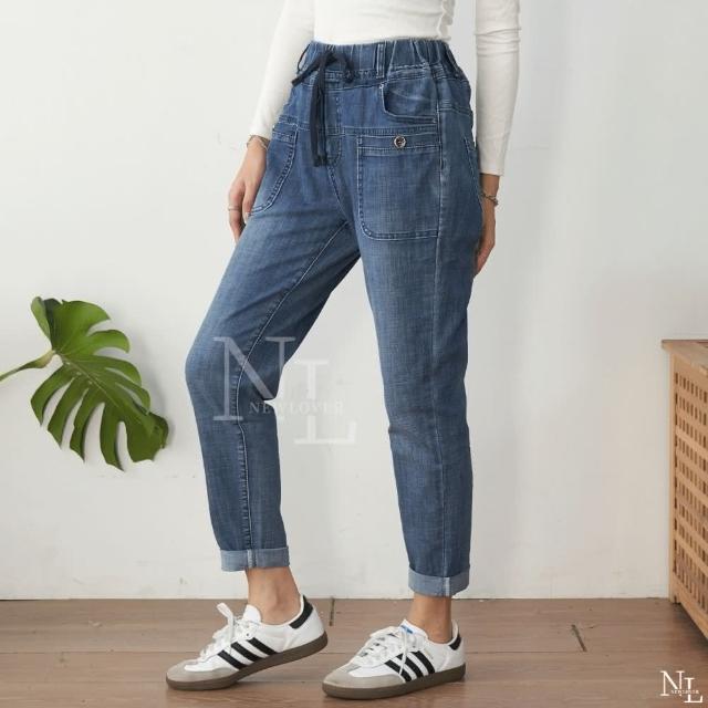 NEWLOVER牛仔時尚 清新慵懶感 彈性鬆緊腰男友褲 S-XL 彈性長褲 牛仔褲 161-6848