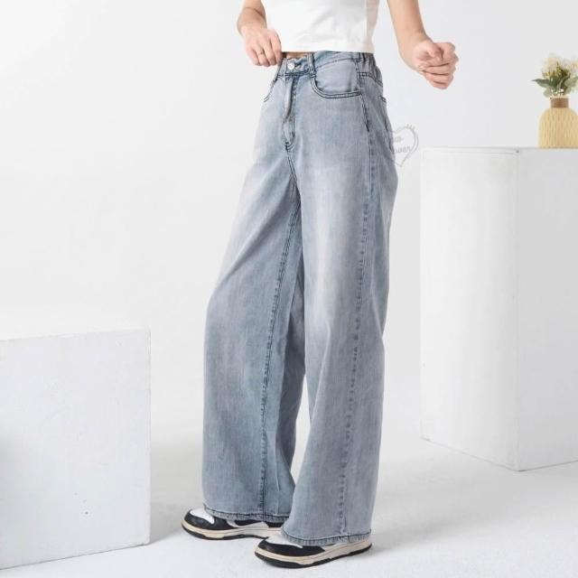 NEWLOVER牛仔時尚 梨形身材必備 暖調漸層灰寬褲 S-XL 牛仔褲 彈性長褲 直筒褲 161-6894