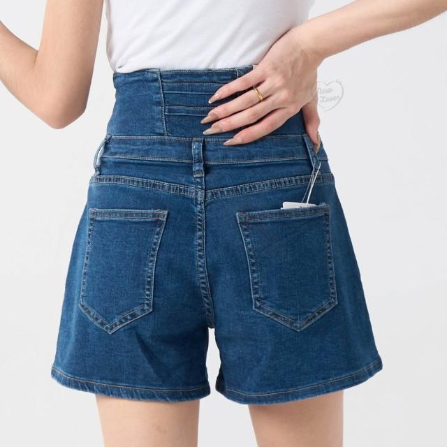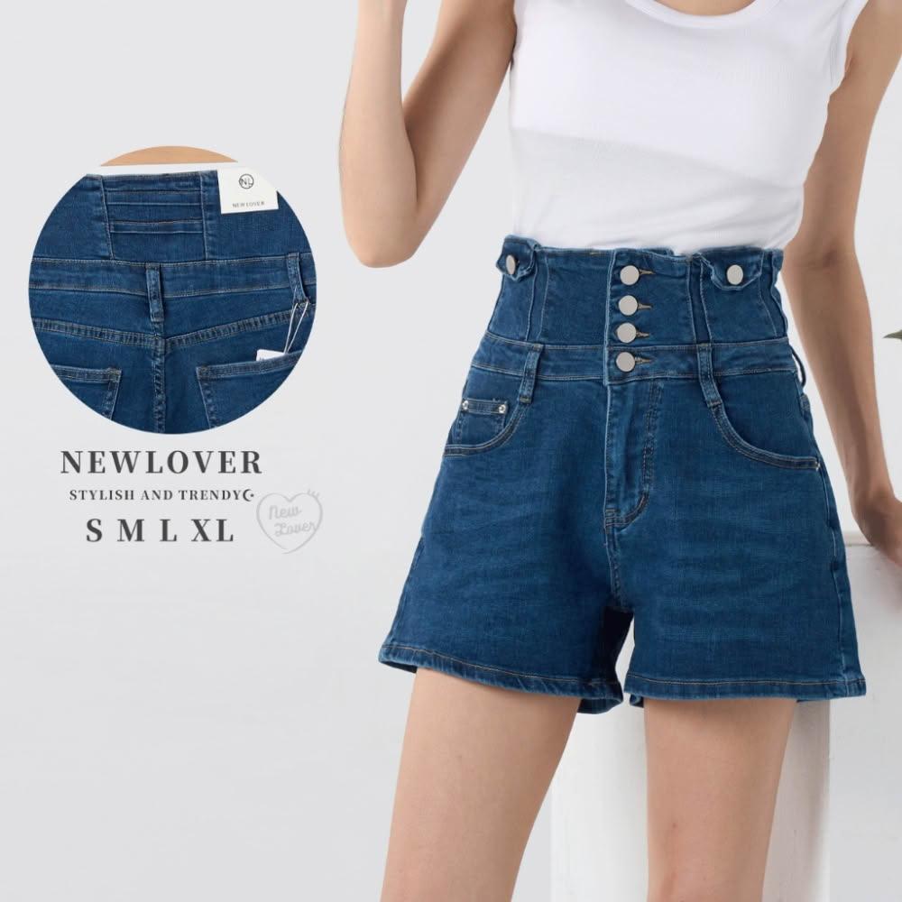 NEWLOVER牛仔時尚 顯瘦修腹高腰排釦短褲 S-XL 高腰 排釦 顯瘦 高腰 牛仔褲 161-5364