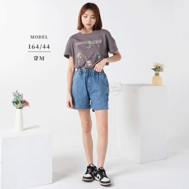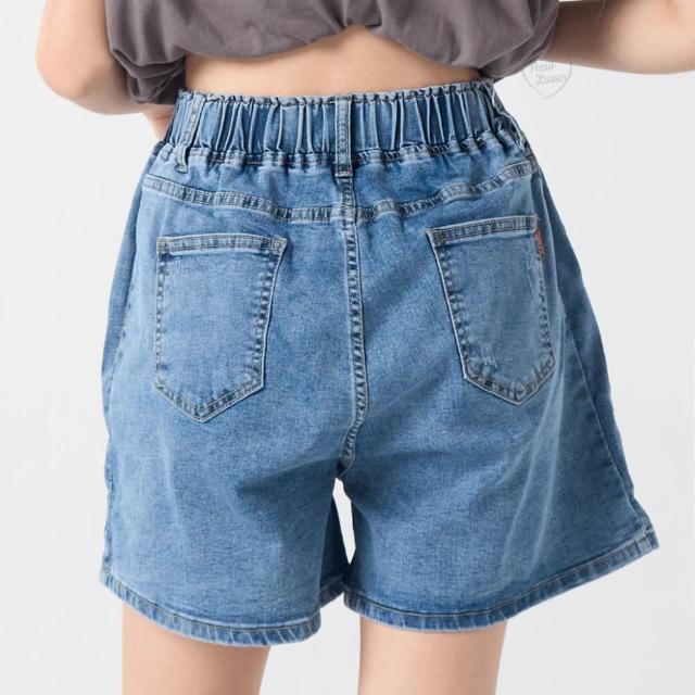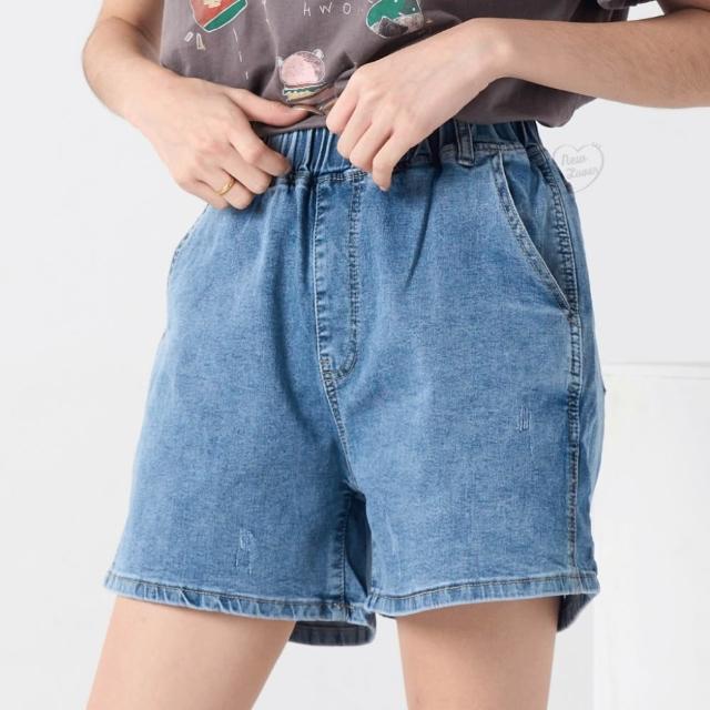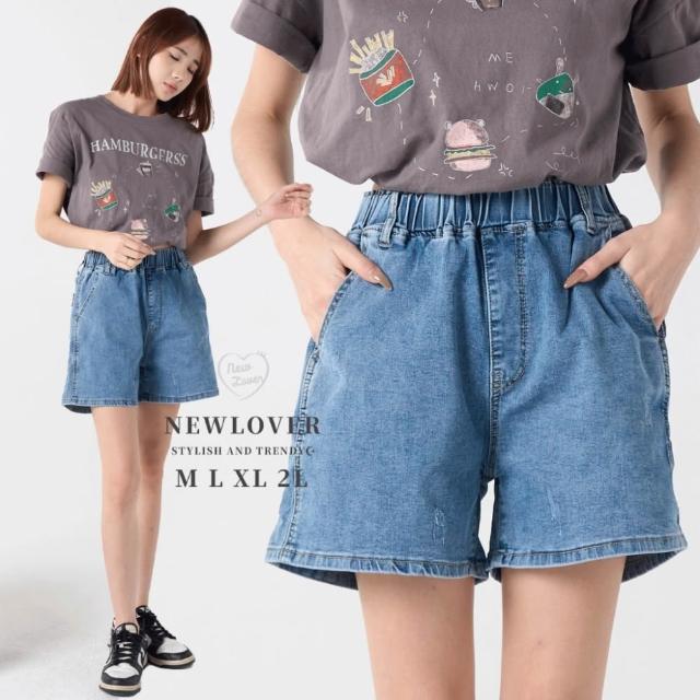 NEWLOVER牛仔時尚 休閒女孩 鬆緊腰寬口短褲 M-2L 休閒 牛仔褲 鬆緊腰 161-5368