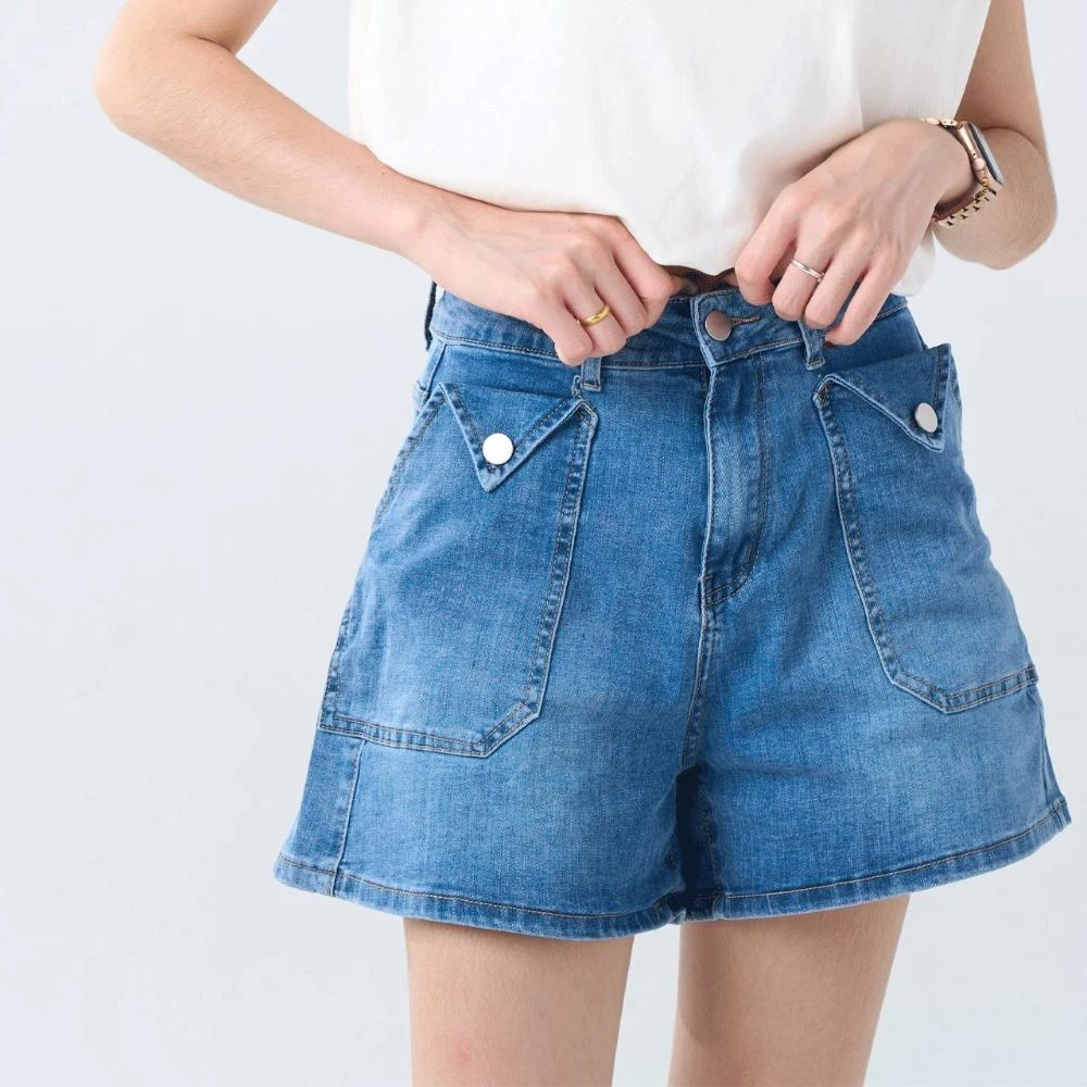 NEWLOVER牛仔時尚 小粗腿首選 A字修腹貼袋短褲 S-XL A字短褲 牛仔短褲 顯瘦 161-5381