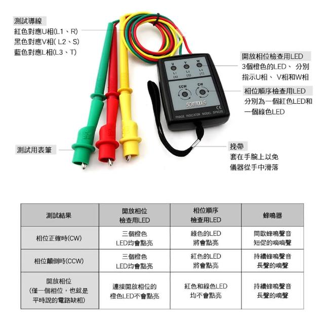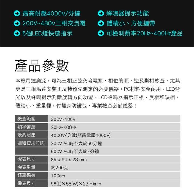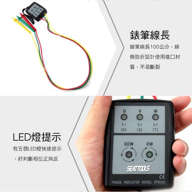930-PD8030 相序檢測器 電錶 萬用電表 萬用電錶 相序錶 相位錶 萬用表 相位表 三相相序測量表 三色錶筆 相序計 相序機 檢相器 相位指示器