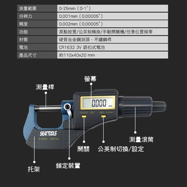 厚度計 分厘卡 電子卡尺 測微螺桿 測微器 測微頭 螺旋測微器 930-MDTG-S(數位千分尺 外徑測量 數位卡尺)