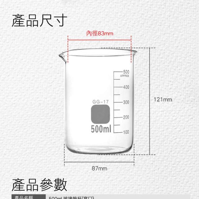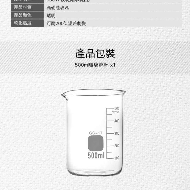 玻璃燒杯 玻璃量杯 化學耐熱刻度量杯 500ml 高硼硅玻璃 具嘴燒杯 廣口燒杯 強度高 量杯 化學耐熱刻度量杯 高耐腐蝕 930-GCL500