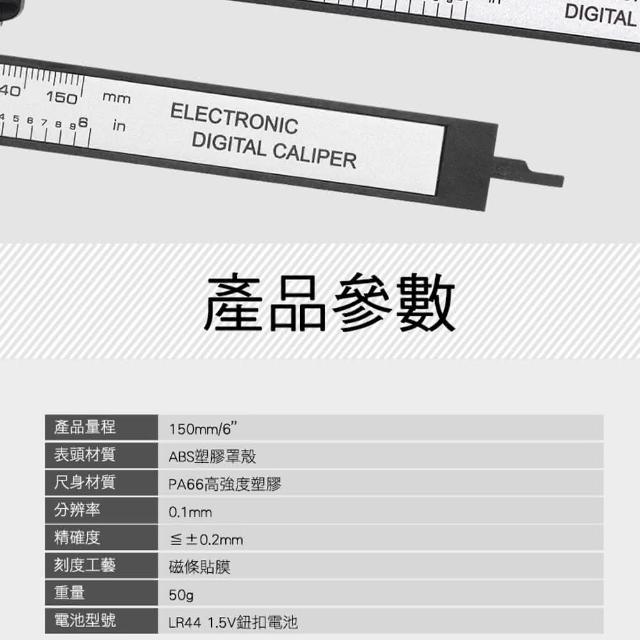 電子尺 卡尺 游標尺 電子測量尺 塑膠卡尺 數顯卡尺 內外徑 930-DVC-S150P(數位游標卡尺 遊標卡尺 測量尺)