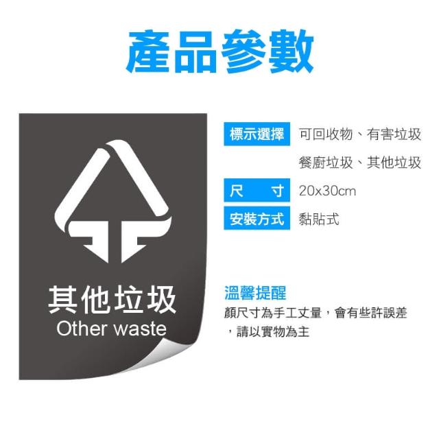 垃圾分類貼紙 其他垃圾/可回收物/餐廚垃圾/有害垃圾 垃圾桶貼紙 資源回收貼紙 回收標示 PVC環保貼紙 930-O1