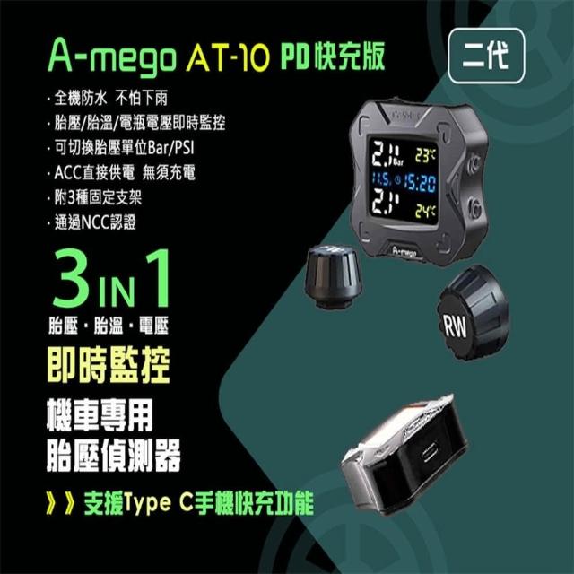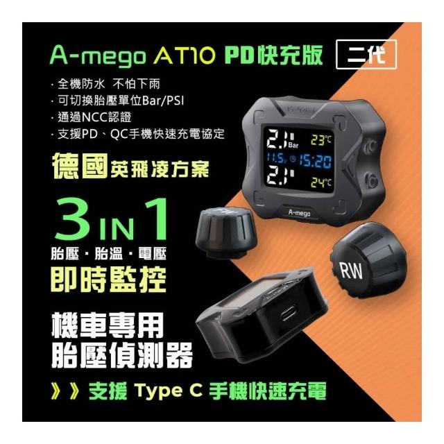 A-mego AT10二代 機車胎壓偵測器+Type C 手機PD快充版(#AT10#胎壓偵測器#PD快充版)