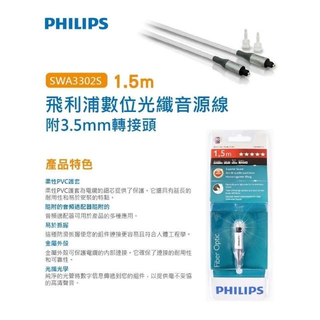 Philips 飛利浦Philips 1.5m數位光纖音源線 附3.5mm轉接頭 SWA3302S/10(#SWA3302S/光纖音源線)