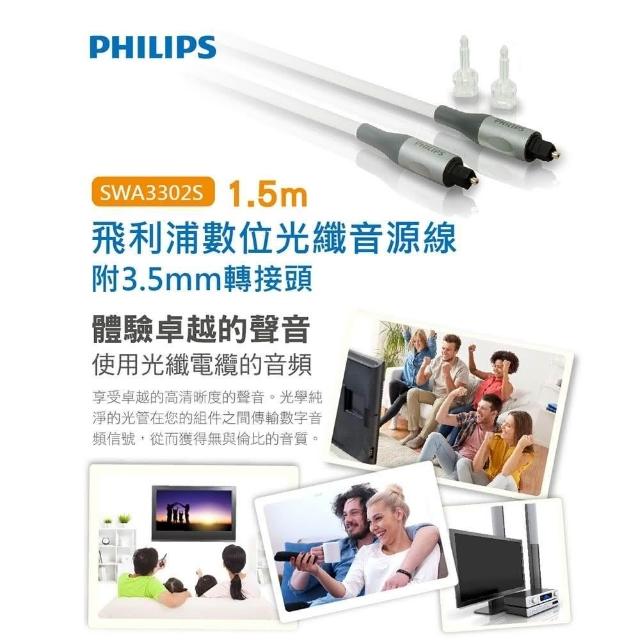 Philips 飛利浦Philips 1.5m數位光纖音源線 附3.5mm轉接頭 SWA3302S/10(#SWA3302S/光纖音源線)
