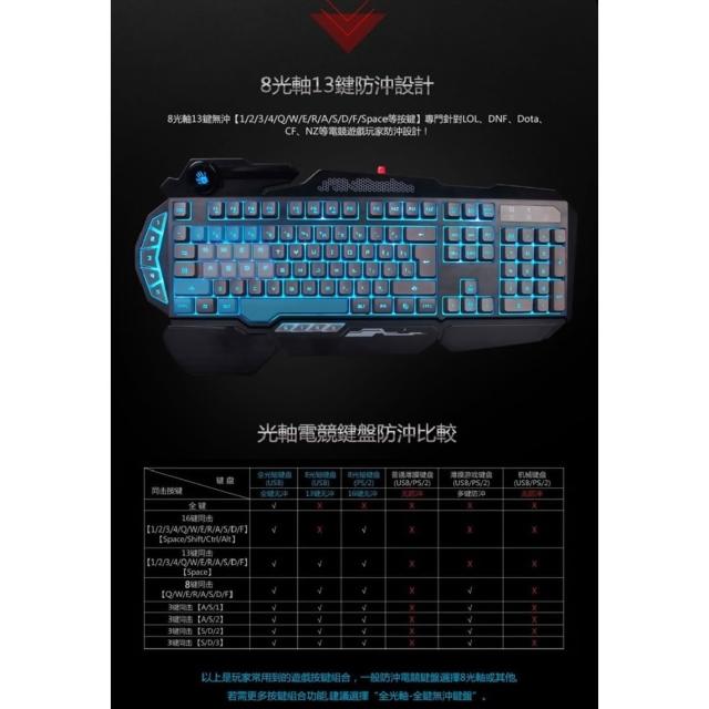 A4 Bloody 雙飛燕A4 雙飛燕 Bloody B318 八光軸機械鍵盤加贈8顆黑色替換鍵帽(#B318#A4 雙飛燕 Bloody#機械鍵盤)