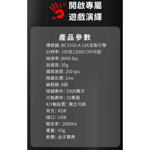 A4 Bloody 雙飛燕W95 MAX 光微動威力三槍RGB調校電競滑鼠