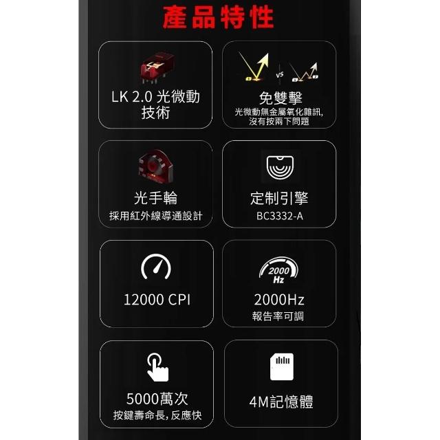- 光微動按鍵,反應快,壽命長