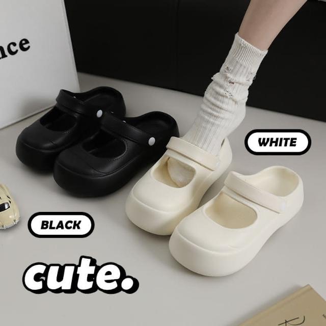 夏季少女感瑪麗珍拖鞋(外穿厚底踩屎感居家沙灘包頭女拖鞋 EVA抗菌材質)