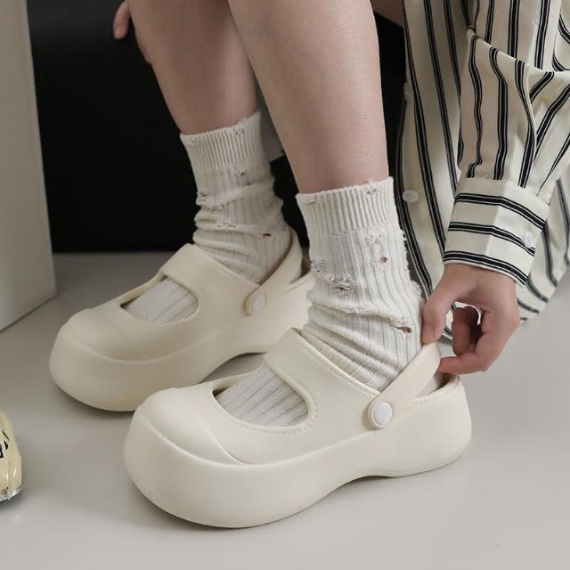 夏季少女感瑪麗珍拖鞋(外穿厚底踩屎感居家沙灘包頭女拖鞋 EVA抗菌材質)