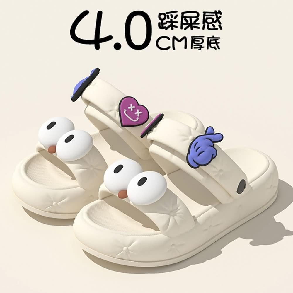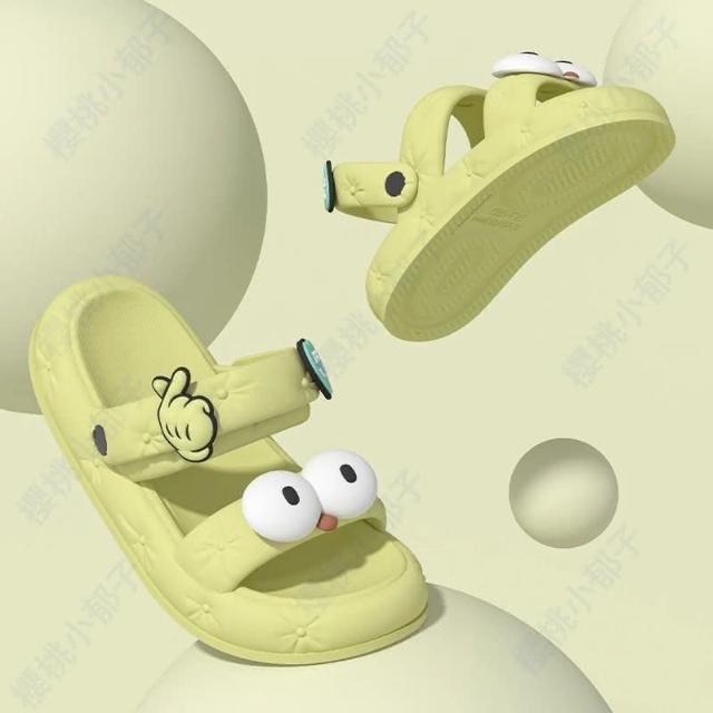 可愛大眼拖鞋(女夏季外穿可愛防滑踩屎感一鞋兩穿沙灘防臭EVA拖鞋家用涼拖)