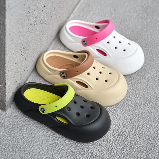 輕量化洞洞鞋 木扣爱心 青蛙 小蜜蜂(雙色洞洞鞋女透氣防滑踩屎感軟底涼鞋eva夏季外穿厚底包頭涼拖鞋)