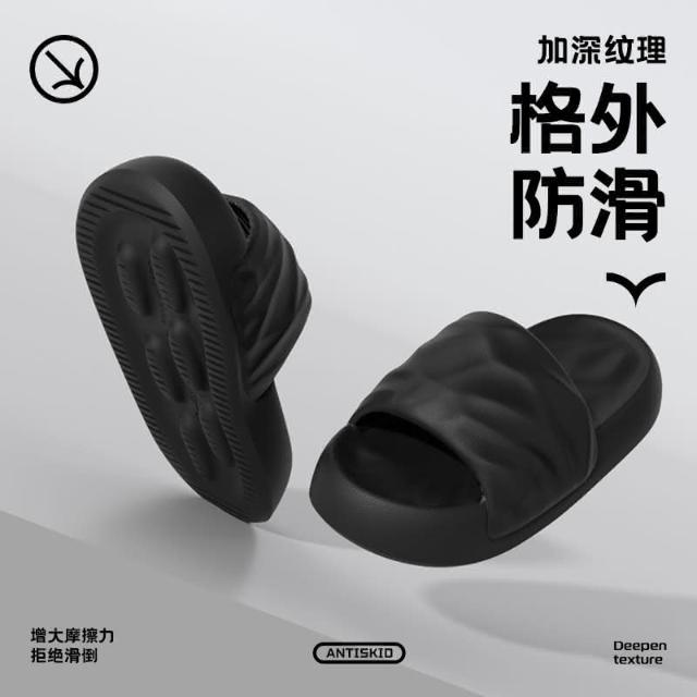 拖鞋男款 純色夏季幾何厚底踩屎感戶外穿潮流(室內軟底防滑新款男士涼拖)