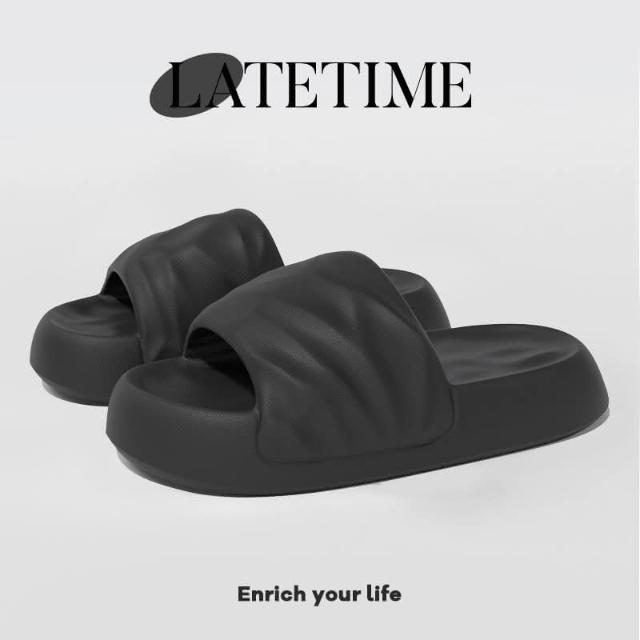 拖鞋男款 純色夏季幾何厚底踩屎感戶外穿潮流(室內軟底防滑新款男士涼拖)
