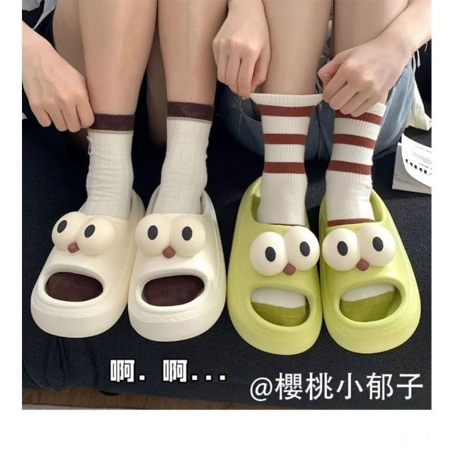 趣味大眼睛多巴胺女孩可愛拖鞋(女厚底細細條夏季踩屎感EVA厚底居家涼拖外穿女一字拖出街穿搭沙特鞋 情侶拖鞋)