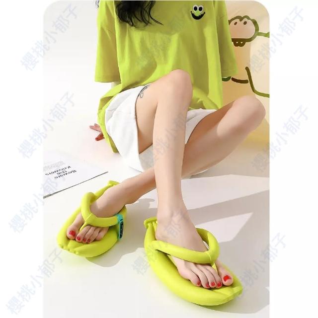香蕉拖鞋 香蕉人字拖(香蕉拖鞋 人字拖 造型拖鞋 女夏季沙灘外穿拖鞋踩屎感居家室內eva洗澡浴室防滑涼)