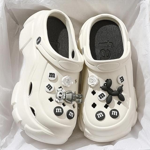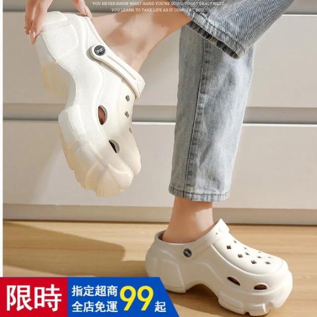 厚底洞洞鞋 純色版(增高洞洞鞋 女夏季外穿透氣女士沙灘防滑eva踩屎感女款涼拖鞋 EVA抗菌材質)