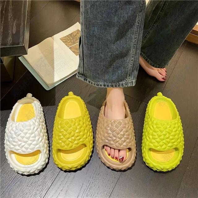 榴蓮拖鞋(女夏季居家室內EVA厚底踩屎感情侶涼拖鞋水果拖鞋 創意拖鞋 可愛拖鞋 室内拖鞋 防滑拖鞋)