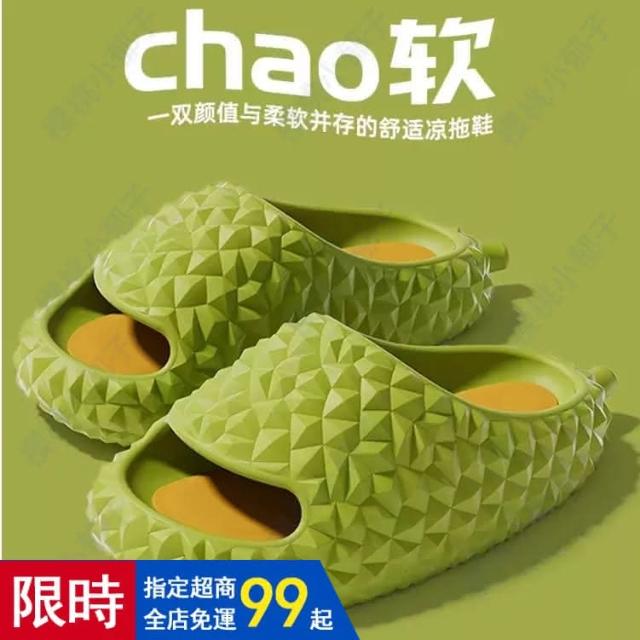 榴蓮拖鞋(女夏季居家室內EVA厚底踩屎感情侶涼拖鞋水果拖鞋 創意拖鞋 可愛拖鞋 室内拖鞋 防滑拖鞋)