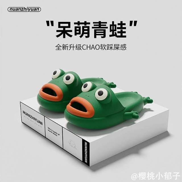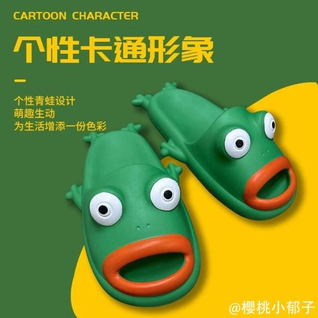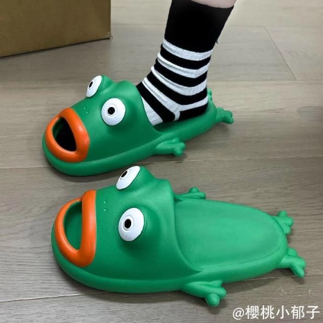 青蛙涼拖鞋(女夏季ins搞怪學生居家室內洗澡防滑 夏天室外拖鞋 踩屎感男拖鞋創意 eva個性拖鞋沙灘拖)